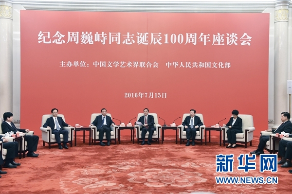 紀念周巍峙同志誕辰100周年座談會7月15日在京舉行。中共中央政治局委員、中央書記處書記、中宣部部長劉奇葆出席座談會并講話。中國文聯主席孫家正出席。