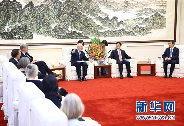 新華社北京8月3日電 中共中央政治局委員、中央政法委書記孟建柱3日在京會見“首次中美法治對話——支持改革和經濟增長”美方代表團。