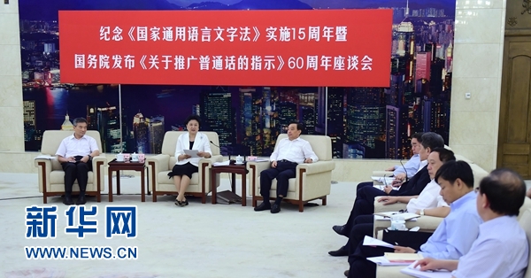 劉延?xùn)|在紀(jì)念《國家通用語言文字法》實施15周年暨國務(wù)院發(fā)布《關(guān)于推廣普通話的指示》60周年座談會上強(qiáng)調(diào)
