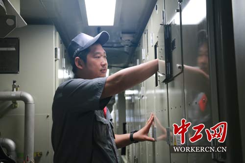 張如意在調試“和諧號”空氣壓縮機。中工網記者 葛文琦攝