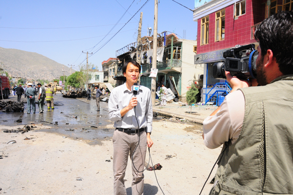 首先,戰地記者是一種責任,需要將戰地重大突發消息第一時間準確、快速、詳實地進行報道。2014年1月17日星期五晚上17點15分左右,當我正在臥室的落地窗前寫東西時,突然一聲巨大的爆炸聲在耳邊響起,還沒等我反應過來,耳畔緊接著傳來一陣陣急促的槍聲——分社駐地的隔壁餐廳遭到塔利班襲擊,與我的直線距離只有三十米。而那家餐廳是我和同事幾乎每周五都會去打牙祭的地方。出于記者的職業敏感,我并沒有在第一時間選擇避險,而是立刻跑到相對安全的隔壁房間發中英文快訊。而那次襲擊共造成21人死亡,其中13人是歐美人士,包括當時IMF駐阿富汗的總代表。新華社中英文快訊均搶到全球首發。槍聲和爆炸聲一直持續到凌晨時分,警方的清剿行動更是天亮才結束。由于當晚分社恰巧只有我一人,為了報道,我幾乎一夜無眠。