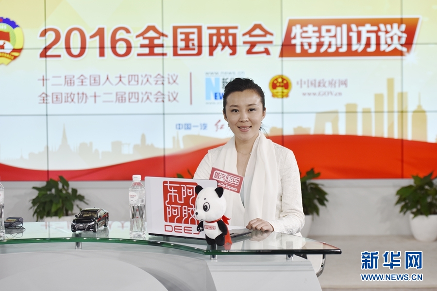 2016年3月12日,全國人大代表、正邦集團董事局主席、總裁林印孫做客新華網兩會訪談直播間。圖為新華網主持人張姣。新華網 郭小天 攝