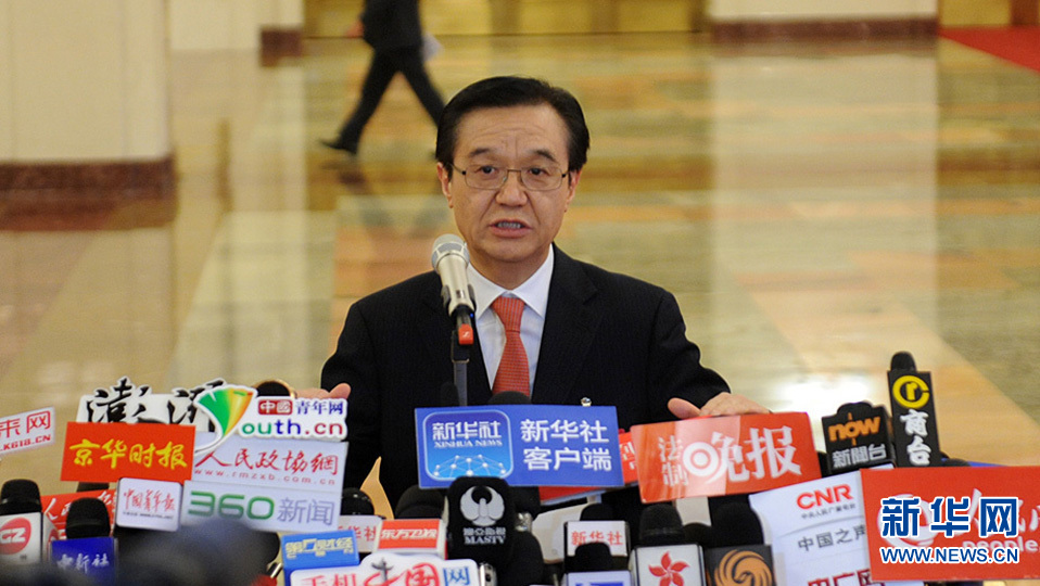 3月13日上午9時,第十二屆全國人民代表大會第四次會議將在人民大會堂舉行第三次全體會議,聽取最高人民法院院長周強關于最高人民法院工作的報告,聽取最高人民檢察院檢察長曹建明關于最高人民檢察院工作的報告。圖為商務部長高虎城在部長通道接受采訪。新華網/中國政府網 陳競超 攝