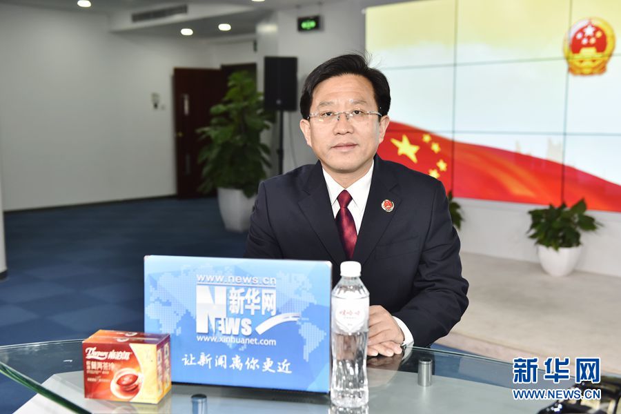 ??? 2016年3月13日,最高人民檢察院辦公廳主任、新聞辦主任王松苗做客新華網(wǎng)兩會訪談直播間。圖為王松苗在訪談現(xiàn)場。新華網(wǎng) 付宇鵬 攝