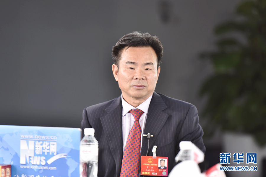 ????2016年3月13日,全國人大代表、海南省三沙市委書記、市政府市長肖杰做客新華網兩會訪談直播間。圖為肖杰在訪談現場。新華網 郭小天 攝