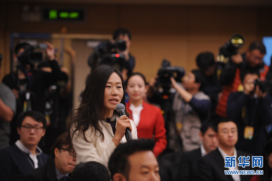 十二屆全國人大四次會議新聞中心于3月14日(星期一)10時在梅地亞中心多功能廳舉行記者會,邀請交通運輸部部長楊傳堂、交通運輸部運輸服務(wù)司司長劉小明、北京交通發(fā)展研究中心主任郭繼孚就“深化出租汽車改革與發(fā)展”的相關(guān)問題回答中外記者的提問。圖為第一財經(jīng)記者提問。新華網(wǎng)/中國政府網(wǎng) 陳杰 攝?