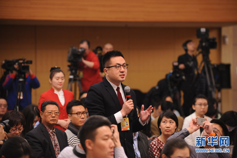 十二屆全國人大四次會議新聞中心于3月14日(星期一)10時在梅地亞中心多功能廳舉行記者會,邀請交通運輸部部長楊傳堂、交通運輸部運輸服務司司長劉小明、北京交通發展研究中心主任郭繼孚就“深化出租汽車改革與發展”的相關問題回答中外記者的提問。圖為中國網記者提問。新華網/中國政府網 陳杰 攝