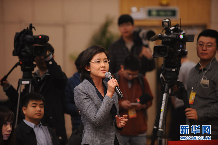十二屆全國人大四次會議新聞中心于3月15日(星期二)10時在梅地亞中心多功能廳舉行記者會,邀請住房和城鄉建設部部長陳政高、副部長陸克華、副部長倪虹就“棚戶區改造和房地產工作”的相關問題回答中外記者的提問。圖為中央電視臺記者提問。新華網/中國政府網 陳杰 攝