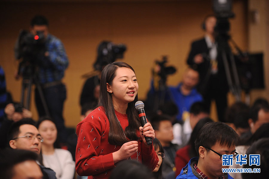 十二屆全國人大四次會議新聞中心于3月15日(星期二)10時在梅地亞中心多功能廳舉行記者會,邀請住房和城鄉建設部部長陳政高、副部長陸克華、副部長倪虹就“棚戶區改造和房地產工作”的相關問題回答中外記者的提問。圖為法制晚報記者提問。新華網/中國政府網 陳杰 攝