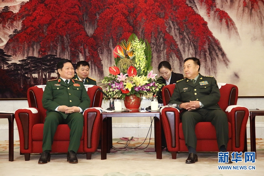 1月13日,中央軍委副主席范長龍在北京八一大樓會見越南國防部長吳春歷。新華社發(劉芳 攝)