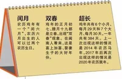 一些細心的網(wǎng)友發(fā)現(xiàn),今年是農(nóng)歷丁酉雞年,雞年有兩個立春日,出現(xiàn)“一年兩頭春”歷法現(xiàn)象。所謂“一年兩頭春”也稱“雙春年”,是指在農(nóng)歷的一年中有兩個立春之日。具體到農(nóng)歷雞年來說,2017年1月28日開始進入農(nóng)歷雞年,而直到2018年的2月16日才會迎來下一個農(nóng)歷新年,所以農(nóng)歷丁酉雞年就包含了兩個立春日,即雞年的正月初七立春(2017年2月3日)和同年臘月十九(2018年2月4日)再次立春。