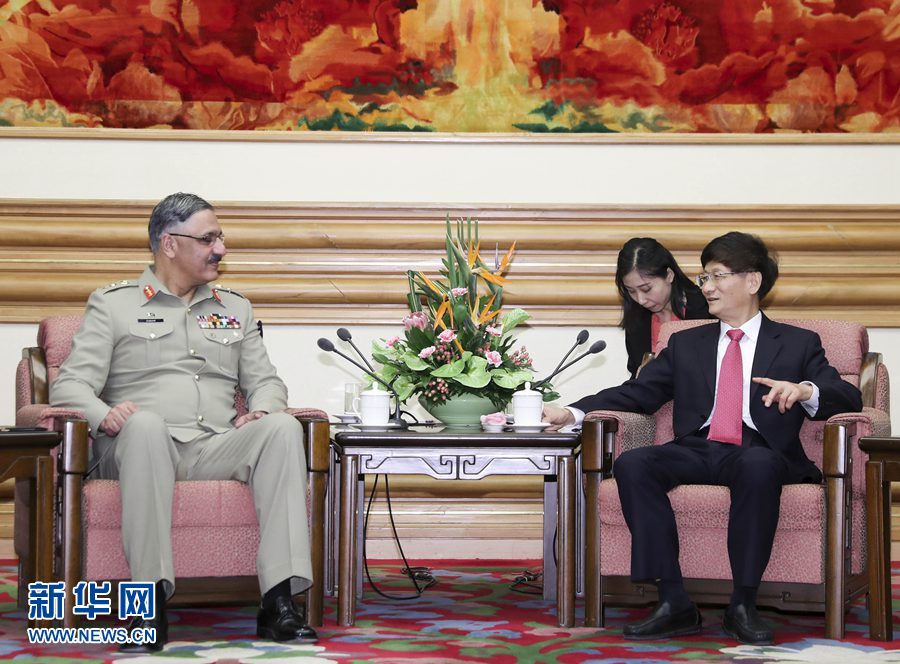 6月16日,中共中央政治局委員、中央政法委書記孟建柱在北京中南海會見巴基斯坦參謀長聯席會議主席祖拜爾。 新華社記者 丁林 攝
