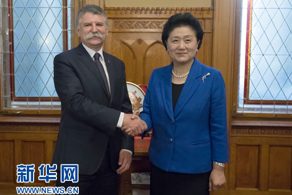 新華社布達(dá)佩斯6月19日電? 6月19日,國務(wù)院副總理劉延?xùn)|在布達(dá)佩斯會(huì)見匈牙利國會(huì)主席克韋爾。