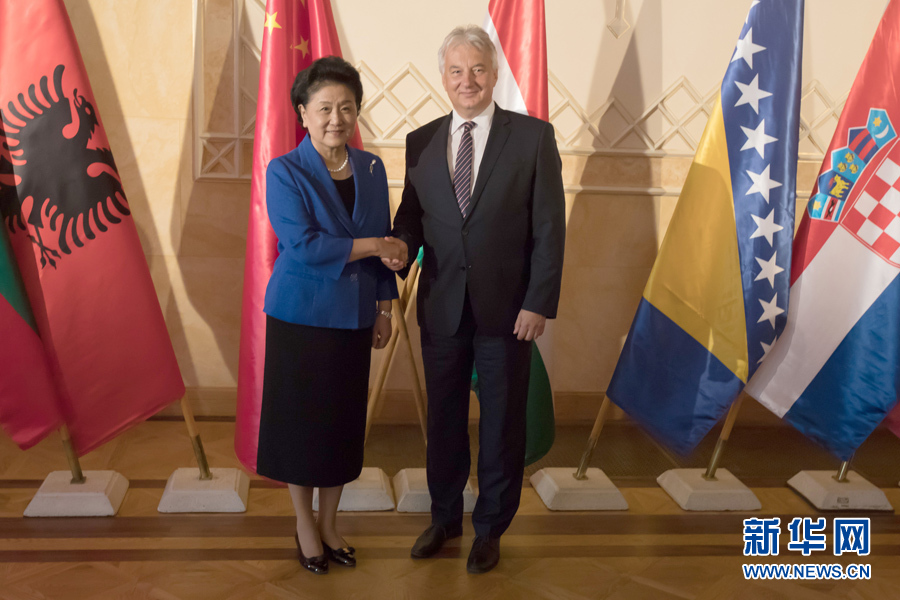 6月19日,在匈牙利布達佩斯,中國國務院副總理劉延東(左)會見匈牙利副總理謝姆延。 新華社發(弗爾季·奧蒂洛攝)