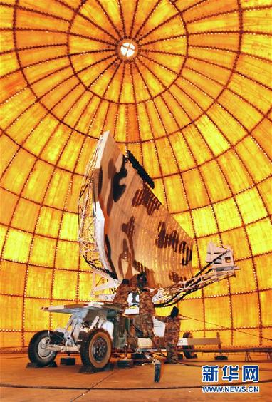 駐守藏北某雷達站擔負節日值班工作的官兵,精心檢查維護雷達天線,確保“千里眼”明亮(2011年1月30日攝)。新華社發(劉應華 攝)