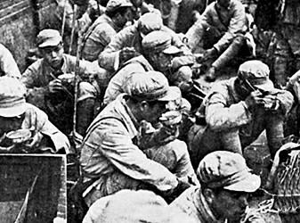 當時明文規定:進入市區的,只限指揮機關和戰斗部隊,后方輜重、騾馬一律不得進入市區。這樣,炊事員在郊外燒好了飯,甚至要走上二三十里路,才能送到戰士手里。路途遠,加上天下雨,有時一天只能走一個來回,戰士也就只能一天吃一餐。