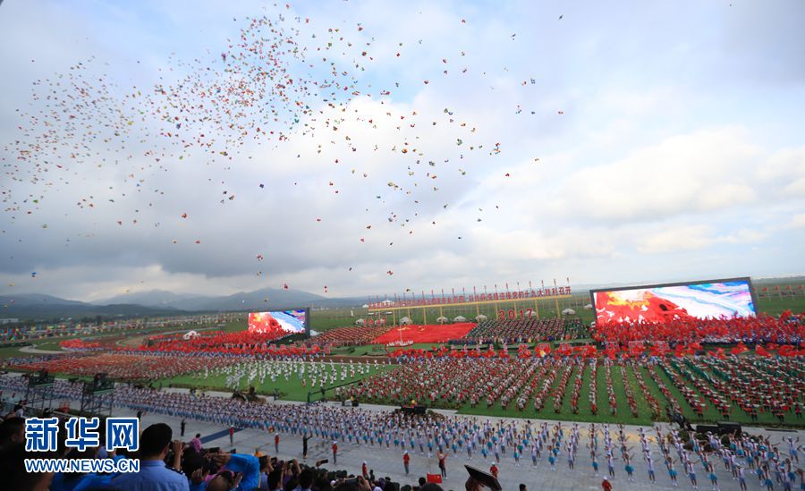 8月8日,內(nèi)蒙古自治區(qū)成立70周年慶祝大會(huì)在呼和塔拉內(nèi)蒙古少數(shù)民族群眾文化體育運(yùn)動(dòng)中心舉行。圖為群眾行進(jìn)表演。新華網(wǎng)記者 陳杰 攝
