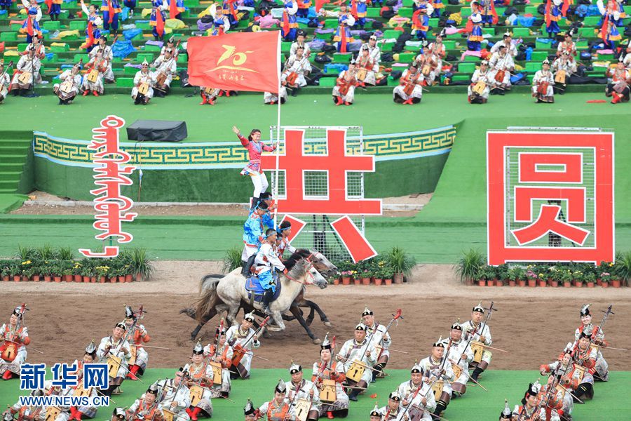 8月8日,內(nèi)蒙古自治區(qū)成立70周年慶祝大會(huì)在呼和塔拉內(nèi)蒙古少數(shù)民族群眾文化體育運(yùn)動(dòng)中心舉行。圖為群眾行進(jìn)表演。新華網(wǎng)記者 陳杰 攝