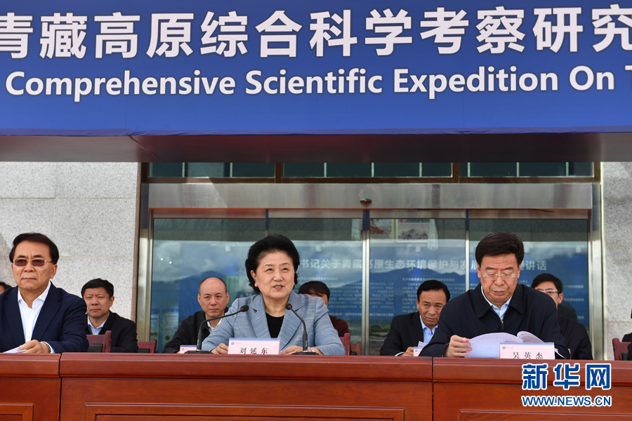 8月19日,第二次青藏高原綜合科學考察研究在拉薩啟動。中共中央總書記、國家主席、中央軍委主席習近平發來賀信,向參加科學考察的全體科研人員、青年學生和保障人員表示熱烈的祝賀和誠摯的問候。中共中央政治局委員、國務院副總理劉延東在啟動儀式上宣讀習近平的賀信,宣布第二次青藏高原綜合科學考察研究啟動。新華社記者 張汝鋒 攝