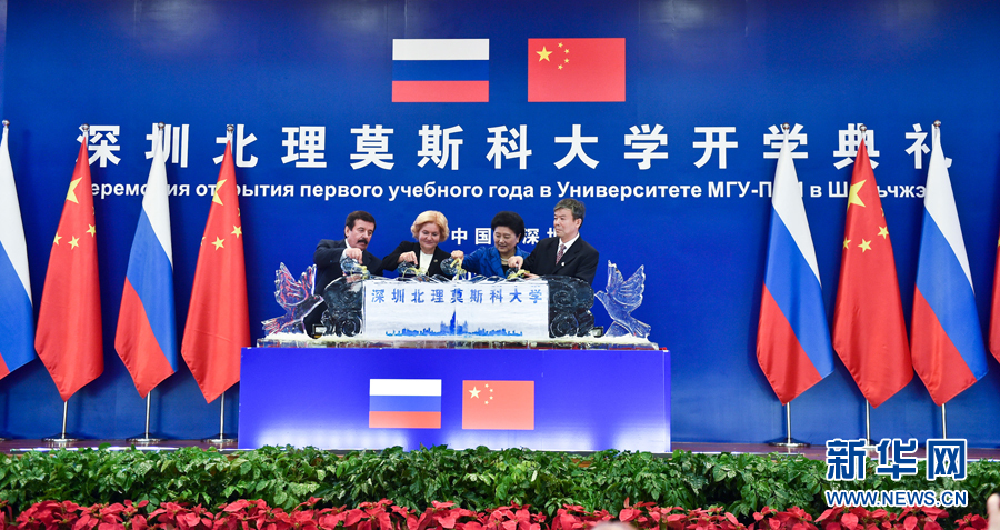 9月13日,中國國務院副總理、中俄人文合作委員會中方主席劉延東在深圳與俄羅斯副總理、委員會俄方主席戈洛杰茨共同出席深圳北理莫斯科大學開學典禮。新華社記者 毛思倩 攝