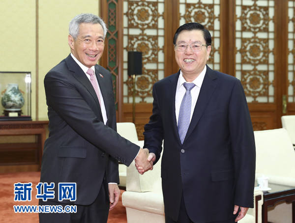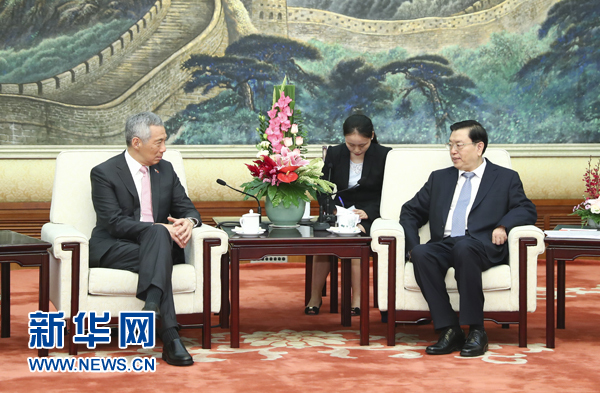 9月20日,中共中央政治局常委、全國人大常委會委員長張德江在北京會見新加坡總理李顯龍。 新華社記者 謝環馳 攝