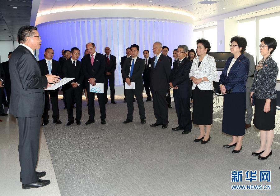 9月25日,中國國務院副總理劉延東(前右三)在美國紐約參觀IBM沃森中心。新華社記者秦朗攝