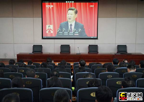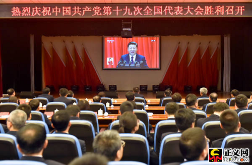 中國共產黨第十九次全國代表大會18日上午在人民大會堂開幕。習近平總書記代表第十八屆中央委員會向大會作了題為《決勝全面建成小康社會 奪取新時代中國特色社會主義偉大勝利》的報告。國家檢察官學院黨員干部集體收看收聽了開幕式。徐鵬宇攝