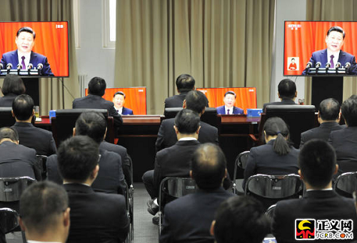 最高檢黨組成員、副檢察長李如林,黨組成員許衛國,檢委會專職委員陳國慶與機關黨員干部一同收看了大會實況轉播。