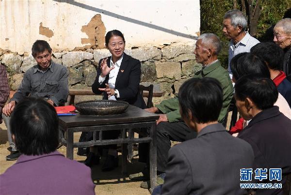 10月27日,十九大代表余靜(前左)在金寨縣大灣村與村民交流。新華社發(fā)(陳力攝)