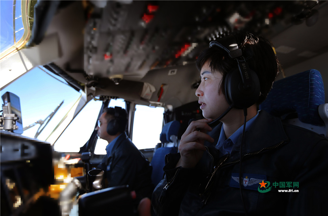 空軍首位運(yùn)-9飛機(jī)女機(jī)長陳金蘭駕駛飛機(jī)飛赴目標(biāo)空域。劉暢 攝影