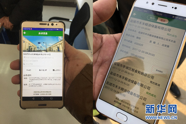 圖為“滿意蘇糧”App預(yù)約賣糧的操作界面。新華網(wǎng)汪亞/攝