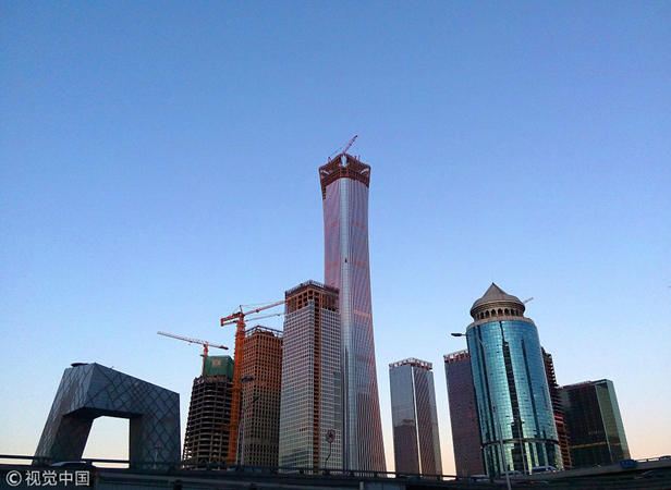 ??2017年12月20日,藍天下的北京CBD中心區(qū)。