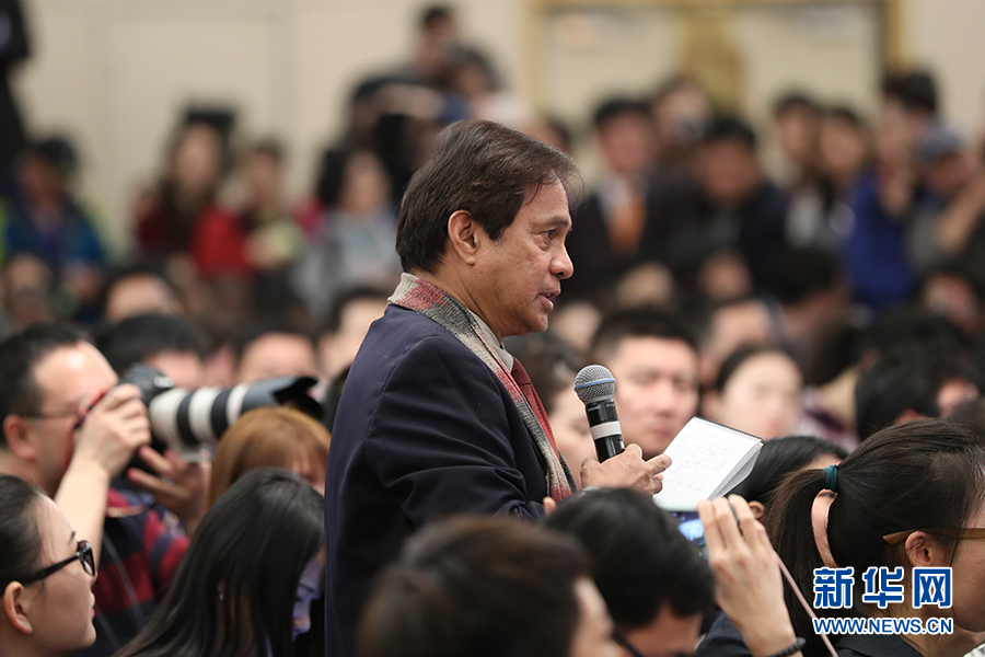 十二屆全國人大五次會議新聞中心于3月8日(星期三)10時在梅地亞中心多功能廳舉行記者會,邀請外交部部長王毅就“中國的外交政策和對外關系”的相關問題回答中外記者的提問。圖為美國全國廣播公司記者提問。新華網/中國政府網 孫韜 攝