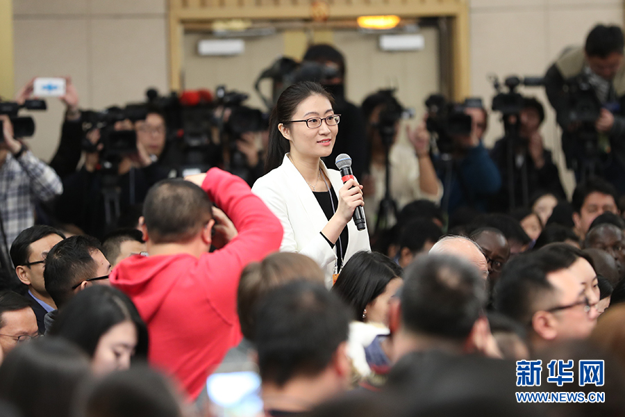 十二屆全國人大五次會議新聞中心于3月8日(星期三)10時在梅地亞中心多功能廳舉行記者會,邀請外交部部長王毅就“中國的外交政策和對外關系”的相關問題回答中外記者的提問。圖為人民日報記者提問。新華網/中國政府網 孫韜 攝?