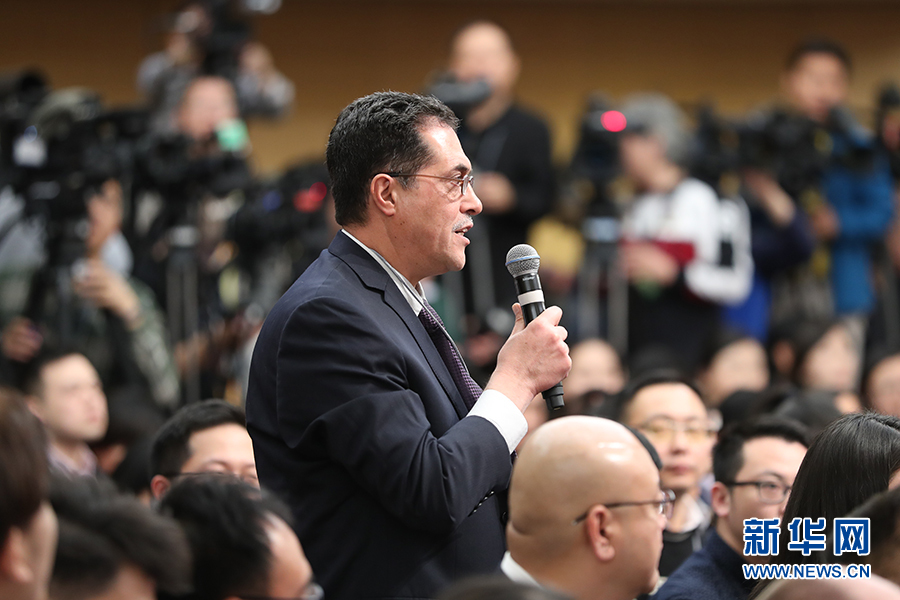 十二屆全國人大五次會(huì)議新聞中心于3月8日(星期三)10時(shí)在梅地亞中心多功能廳舉行記者會(huì),邀請外交部部長王毅就“中國的外交政策和對外關(guān)系”的相關(guān)問題回答中外記者的提問。圖為半島電視臺(tái)記者提問。新華網(wǎng)/中國政府網(wǎng) 翟子赫 攝
