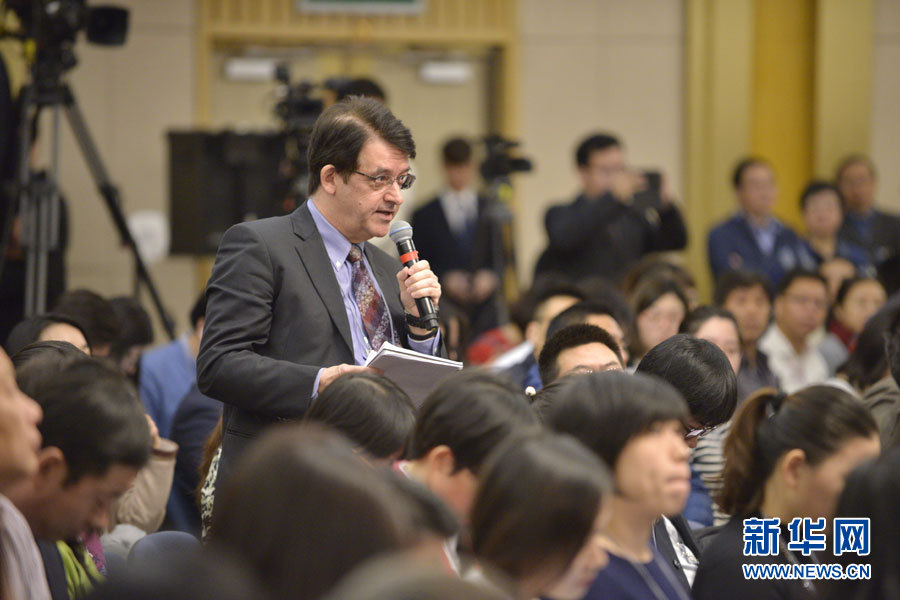3月10日,十二屆全國人大五次會(huì)議新聞中心舉行記者會(huì),邀請(qǐng)中國人民銀行行長(zhǎng)周小川、副行長(zhǎng)易綱、副行長(zhǎng)兼國家外匯管理局局長(zhǎng)潘功勝、副行長(zhǎng)范一飛就“金融改革與發(fā)展”的相關(guān)問題回答中外記者的提問。圖為彭博新聞社記者提問。新華網(wǎng)/中國政府網(wǎng) 王健 攝