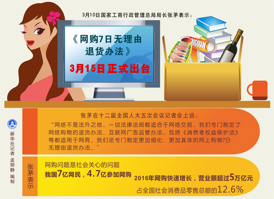 圖表:《網購7日無理由退貨辦法》3月15日正式出臺 新華社記者 孟麗靜 編制