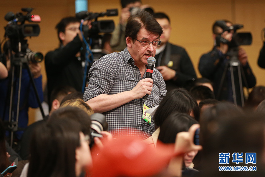 3月11日,十二屆全國人大五次會議新聞中心舉行記者會,主題是“改革開放調結構 創新驅動促發展”,商務部部長鐘山、副部長王受文、副部長錢克明出席并回答中外記者的提問。圖為彭博新聞社記者提問。 新華網/中國政府網 王健 攝