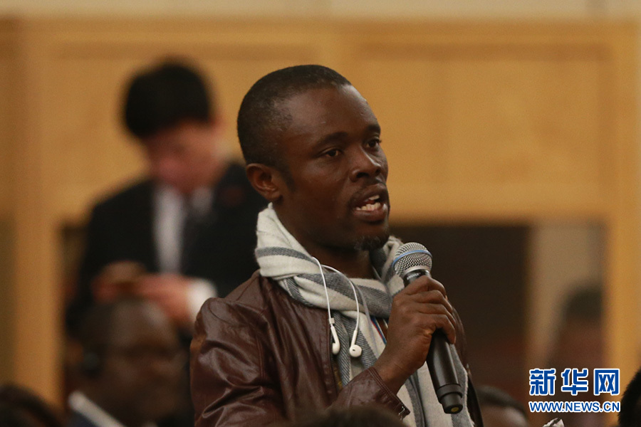 3月11日,十二屆全國人大五次會議新聞中心舉行記者會,主題是“改革開放調結構 創新驅動促發展”,商務部部長鐘山、副部長王受文、副部長錢克明出席并回答中外記者的提問。圖為利比里亞記者提問。 新華網/中國政府網 傅義洲 攝