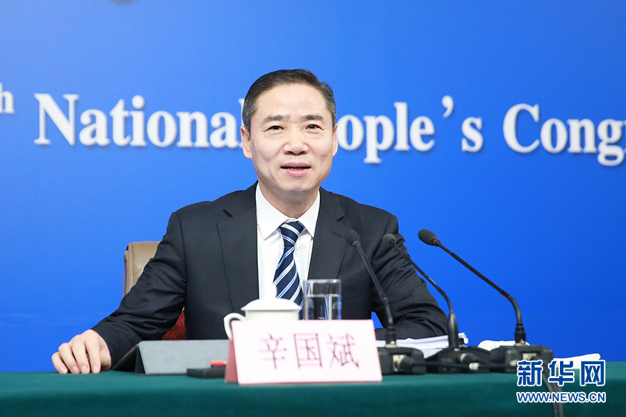 3月11日,十二屆全國人大五次會議新聞中心舉行記者會,邀請工業和信息化部部長苗圩、副部長辛國斌和總工程師、新聞發言人張峰就“推進實施‘中國制造2025’”的相關問題回答中外記者的提問。圖為工業和信息化部副部長辛國斌。新華網/中國政府網?翟子赫 攝?