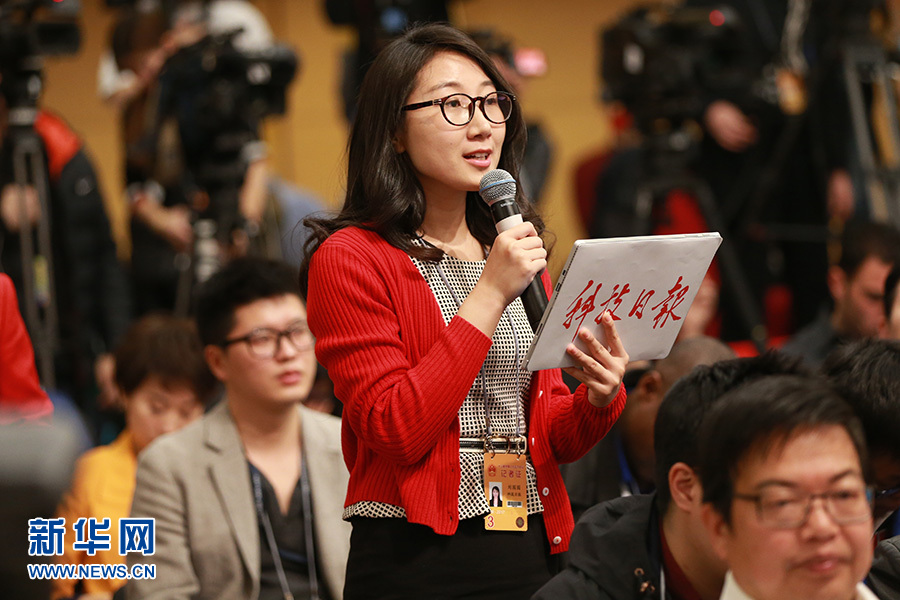 3月11日,十二屆全國人大五次會議新聞中心舉行記者會,邀請科技部部長萬鋼、秘書長徐建培就“2016年創(chuàng)新驅動發(fā)展戰(zhàn)略實施進展成效和2017年重點工作”的相關問題回答中外記者的提問。圖為科技日報記者提問。新華網/中國政府網 王健 攝