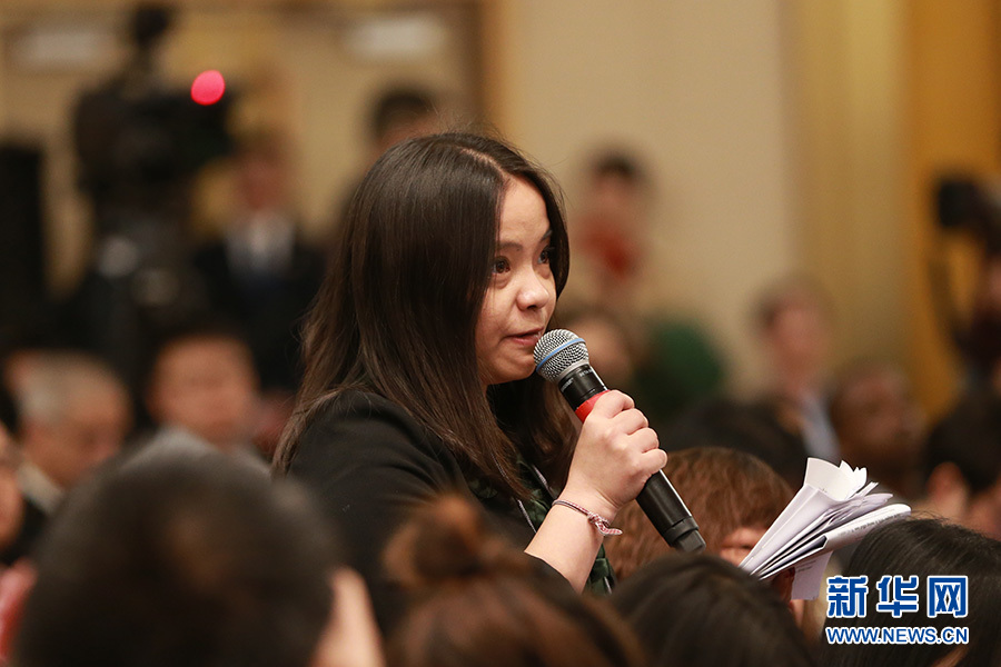 3月11日,十二屆全國人大五次會議新聞中心舉行記者會,邀請科技部部長萬鋼、秘書長徐建培就“2016年創新驅動發展戰略實施進展成效和2017年重點工作”的相關問題回答中外記者的提問。圖為成都商報記者提問。新華網/中國政府網 王健 攝