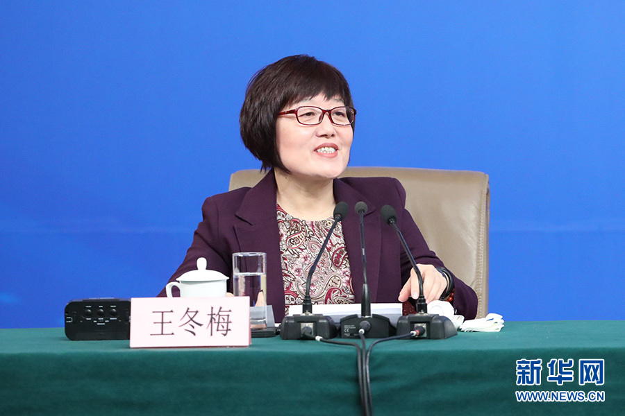 3月11日,十二屆全國人大五次會議新聞中心舉行記者會,邀請科技部部長萬鋼、秘書長徐建培就“2016年創新驅動發展戰略實施進展成效和2017年重點工作”的相關問題回答中外記者的提問。圖為記者會主持人王冬梅。新華網/中國政府網?傅義洲 攝