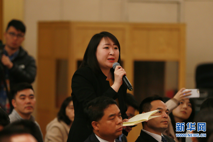 3月14日,十二屆全國人大五次會議新聞中心舉行記者會,邀請國家質檢總局局長支樹平、副局長兼國家認證認可監督管理委員會主任孫大偉、國家標準化管理委員會主任田世宏就“質量提升”的相關問題回答中外記者的提問。圖為中國國際廣播電臺記者提問。新華網/中國政府網 傅義洲 攝?