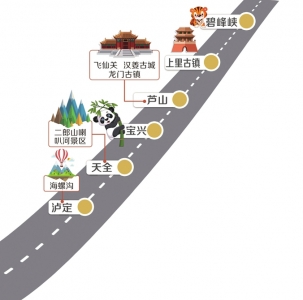 如果到雅康高速自駕,沿線有啥好耍好玩的呢?繼續往下看!在雅康高速起點雅安市雨城區,除了到碧峰峽看國寶大熊貓、到上里古鎮觀水墨山水,還可以去4A級的中國藏茶村。繼續往前走,車子一路向西,在多功出口下高速,再沿國道351線繼續前行不久,便是“漢代文物之鄉”蘆山,有飛仙關、漢姜古城、龍門古鎮3個4A級景區。如果從蘆山沿國道351線繼續走,則到了“熊貓老家,傳奇寶興”。如果在多功收費站不下高速,繼續向前則是“二郎山下的明珠”——天全。重點來了!二郎山喇叭河景區毗鄰雅康高速,冬季最適合去玩,看冰雪美景、小熊貓……最后,在瀘定下高速以后,還可以到海螺溝泡溫泉,從瀘定縣城過去,大概有四十分鐘車程。(記者 李智 李逢春)