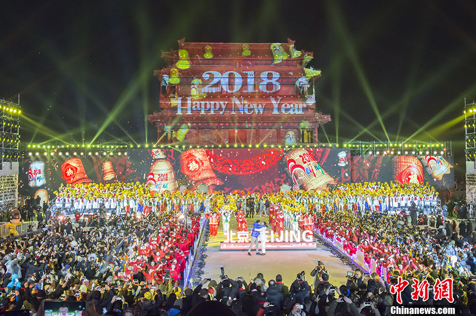 北京永定門上演2018新年倒計時 古老與現代交融