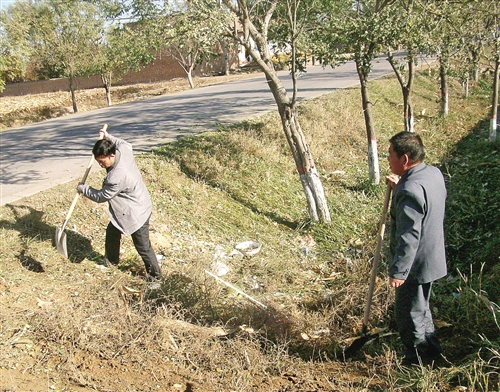 李進禎(左一)生前帶領村民對鄉村環境綜合整治。 (資料圖片)