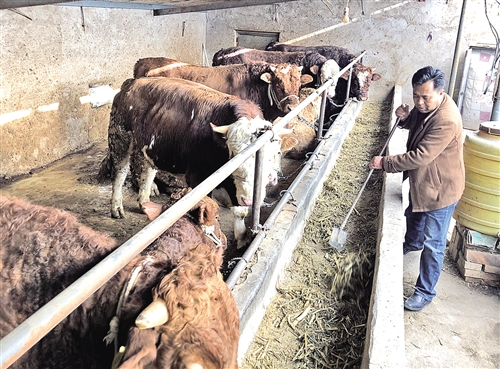 在李進禎幫扶下,建檔立卡的貧困戶馬俊通過養牛,走上脫貧致富之路。(資料圖片)