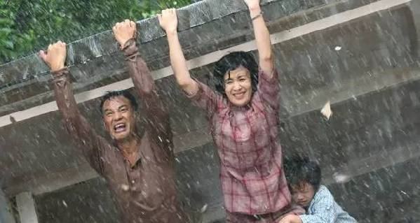 羅先生(任達華飾)羅太太(吳君如飾)用身體撐起頂棚。《歲月神偷》劇照