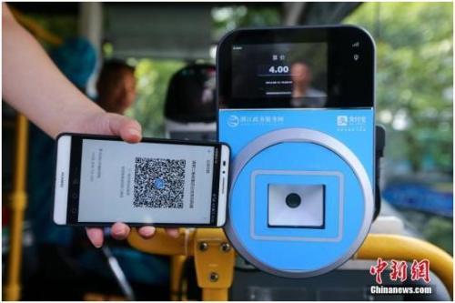 2016年8月16日,杭州民眾刷支付寶乘坐公交車。中新社發 許康平 攝